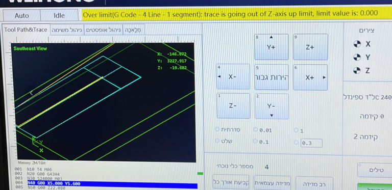 yellow error – over limit(G code) trace is going our of Z-axis up limit, limit value is :0.00